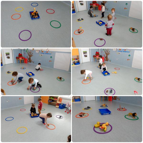 Treballem el concepte "dins-fora", utilitzem cercles grans i petits per ficar-nos a dins i fora.